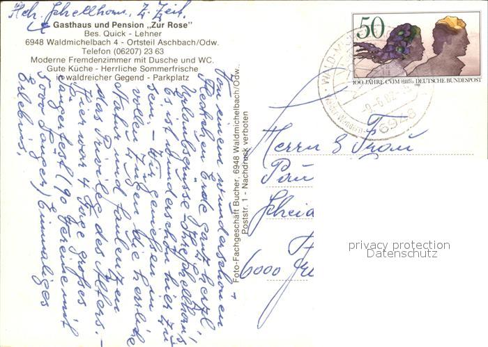72504619 alte Postkarte Aschbach Odenwald Gasthaus Pension Zur Rose postalisch gelaufen Erhaltung siehe scans KatCode: 11110006431021