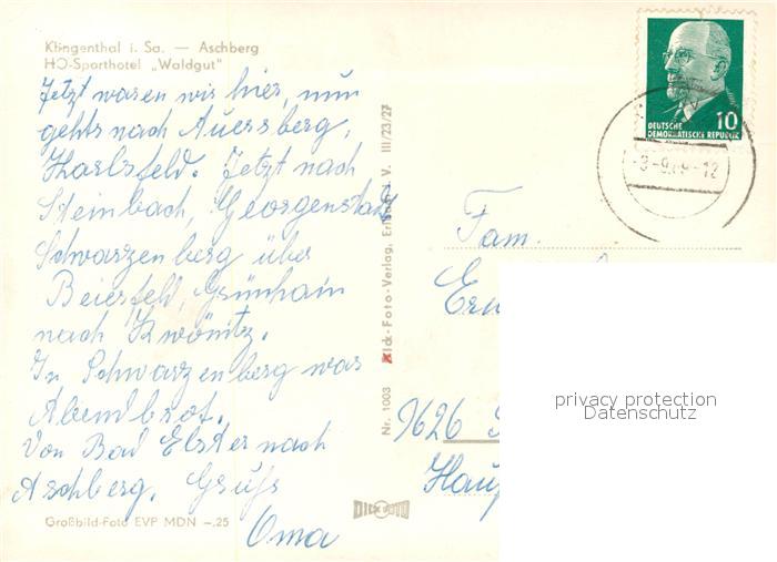 73295020 alte Postkarte Aschberg Vogtland Sporthotel Waldgut postalisch gelaufen Erhaltung siehe scans [PaolaD17] KatCode: 11110014178510