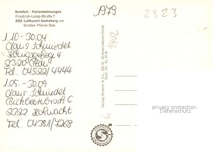 73642735 Ascheberg Holstein Ferienwohnungeen am Grossen Ploener See postalisch nicht gelaufen Erhaltung siehe scans [FriedD77] KatCode: 11110001057001