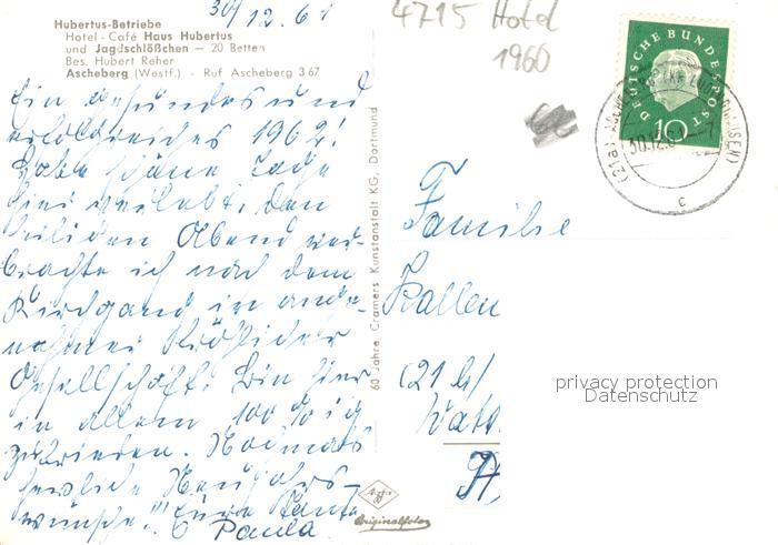 33704021 alte Postkarte Ascheberg Westfalen Hubertus Jagdschloesschen Gastraeume postalisch gelaufen Erhaltung siehe scans [WerneD78] KatCode: 11110005558004