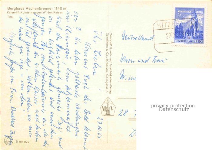 74114940 Aschenbrennerhaus 1140m Kufstein Tirol AT Kaiserlift Kufstein Wilden Kaiser postalisch gelaufen Erhaltung siehe scans [IrynaD87] alte Postkarte Iryn Katcode 11390335070513
