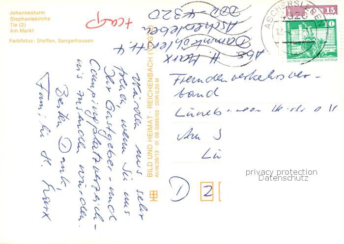 73076082 alte Postkarte Aschersleben Sachsen-Anhalt Johannesturm Markt postalisch gelaufen Erhaltung siehe scans [KathaD81] KatCode: 11110015089015