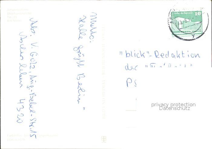 72074477 alte Postkarte Aschersleben Sachsen-Anhalt Johannesturm Stephaniekirche Tie Markt postalisch gelaufen Erhaltung siehe scans KatCode: 11110015089015