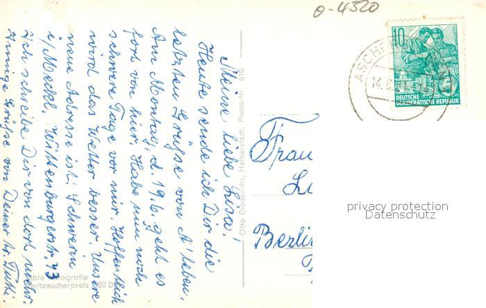 43497641 Aschersleben Sachsen-Anhalt Marktplatz Rathaus Volkshaus Gondelteich Holzmarktstrasse postalisch gelaufen Erhaltung siehe scans [KathaD81] alte Postkarte Kath Katcode 11110015089015