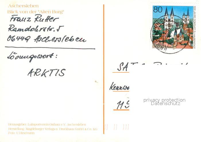 73734504 Aschersleben Sachsen-Anhalt Panorama Blick von der Alten Burg postalisch gelaufen Erhaltung siehe scans [FriedD77] alte Postkarte Frie Katcode 11110015089015