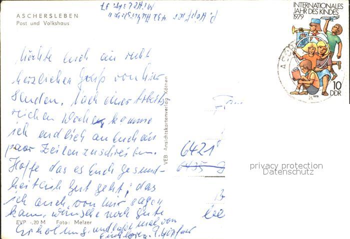 72055253 alte Postkarte Aschersleben Sachsen-Anhalt Post und Volkshaus postalisch gelaufen Erhaltung siehe scans KatCode: 11110015089015
