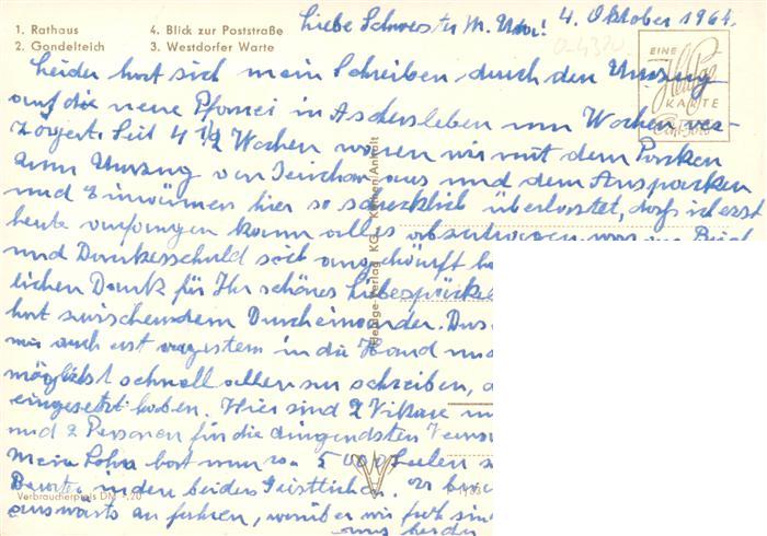 73946788 Aschersleben Sachsen-Anhalt Rathaus Gondelteich Blick zur Poststrasse Westdorfer Warte postalisch nicht gelaufen Erhaltung siehe scans [WerneD78] Wern Katcode 11110015089015