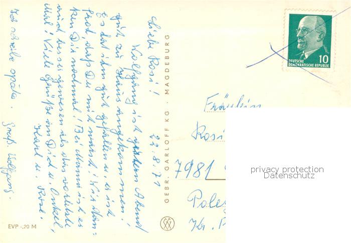 73753967 Aschersleben Sachsen-Anhalt Rathaus mit Hennebrunnen Gondelteich Freibad unter der Burg postalisch gelaufen Erhaltung siehe scans [FriedD77] alte Postkarte Frie Katcode 11110015089015