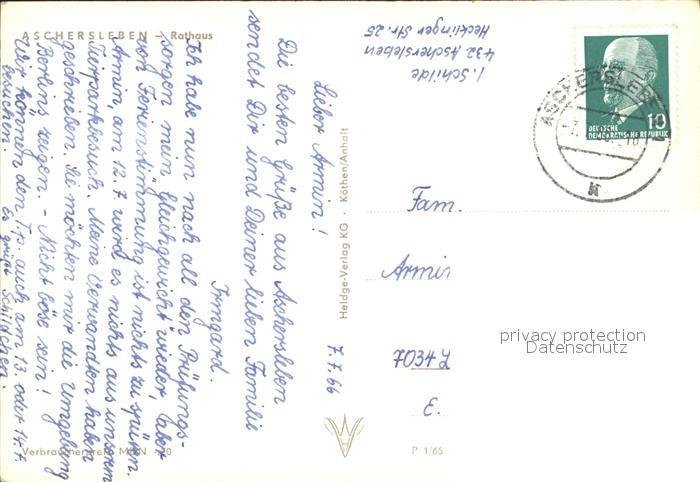 72017732 alte Postkarte Aschersleben Sachsen-Anhalt Rathaus postalisch gelaufen Erhaltung siehe scans KatCode: 11110015089015