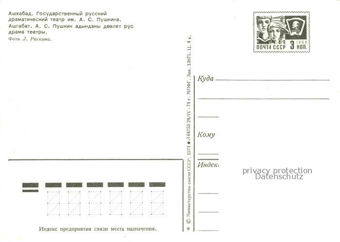 74042181 Aschgabat Russisches Drama Theater A.S. Puschkin postalisch nicht gelaufen Erhaltung siehe scans [IrynaD87] KatCode: 12330