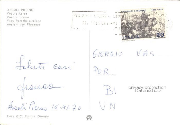 old postcard Ascoli Piceno Veduta aerea postalisch gelaufen Erhaltung siehe scans