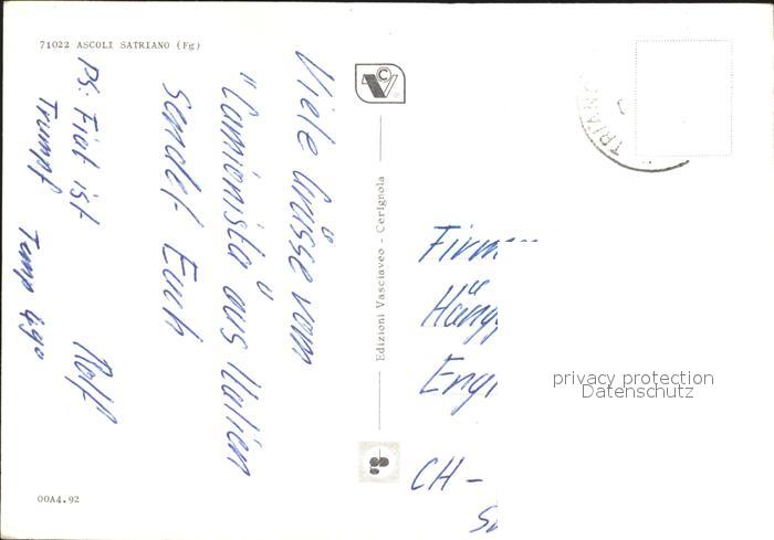 old postcard Ascoli Satriano Strassenansicht Gebaeude postalisch gelaufen Erhaltung siehe scans