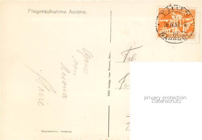 13751392 alte Postkarte Ascona Lago Maggiore Fliegeraufnahme postalisch gelaufen Erhaltung siehe scans [FriedD77] KatCode: 11470210655908