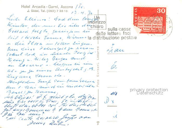 13657969 alte Postkarte Ascona Lago Maggiore Hotel Arcadia Gastraum postalisch gelaufen Erhaltung siehe scans [WerneD78] KatCode: 11470210655908