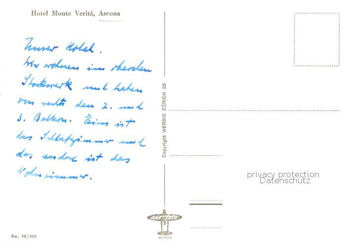 13852267 Ascona Lago Maggiore TI Hotel Monte Verità postalisch nicht gelaufen Fliegeraufnahme Erhaltung siehe scans [FriedD77] KatCode: 11470210655908