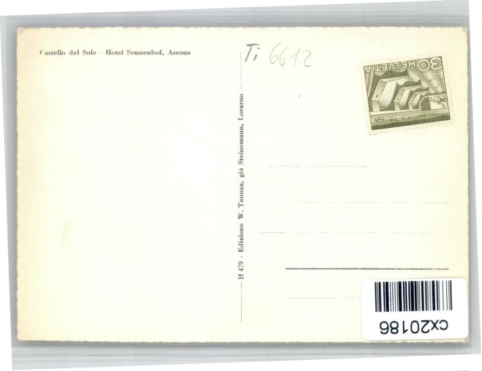 10738205 alte Postkarte Ascona TI Ascona Castello del Sole Hotel Sonnenhof postalisch gelaufen KatCode: 11470210655908