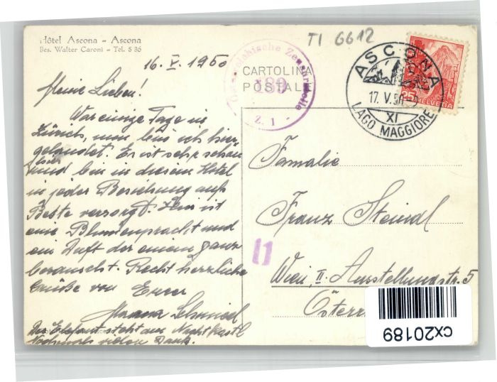 10738208 alte Postkarte Ascona TI Ascona Hotel postalisch gelaufen KatCode: 11470210655908
