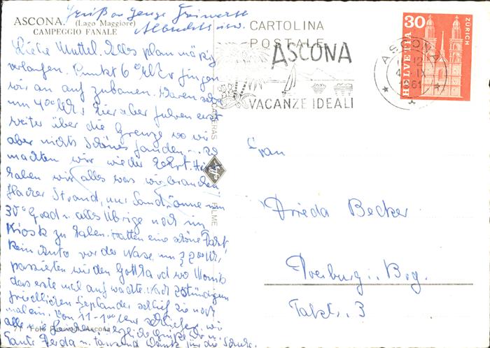 11113171 alte Postkarte Ascona TI Campeggio Fanale postalisch gelaufen KatCode: 11470210655908