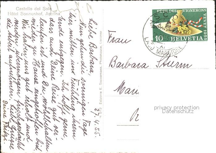11652836 alte Postkarte Ascona TI Castello del Sole Hotel Sonnenhof postalisch gelaufen Erhaltung siehe scans KatCode: 11470210655908