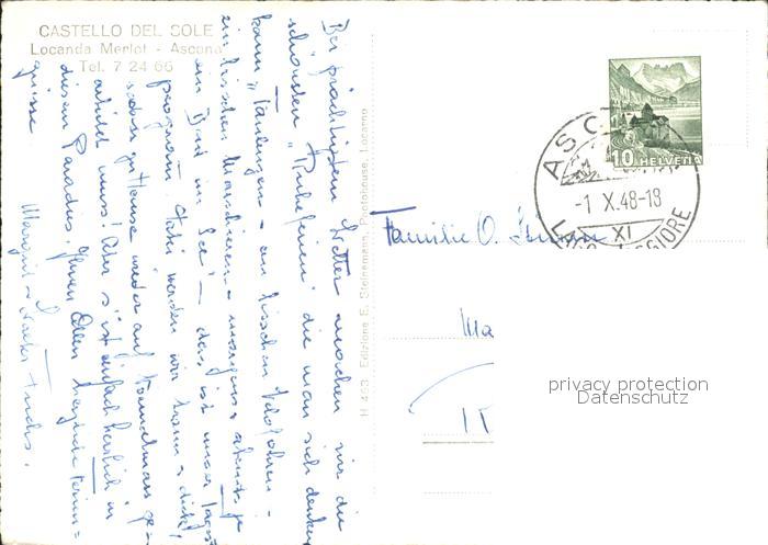 11652832 alte Postkarte Ascona TI Castello del Sole Locanda Merlot postalisch gelaufen Erhaltung siehe scans KatCode: 11470210655908