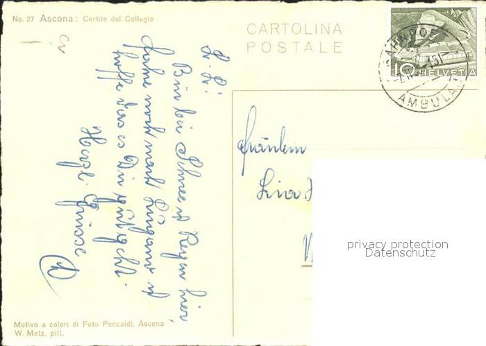11642544 alte Postkarte Ascona TI Cortile del Collegio Kuenstlerkarte postalisch gelaufen Erhaltung siehe scans KatCode: 11470210655908