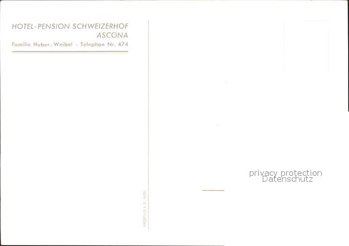 11644046 Ascona TI Hotel Pension Schweizerhof postalisch nicht gelaufen KatCode: 11470210655908