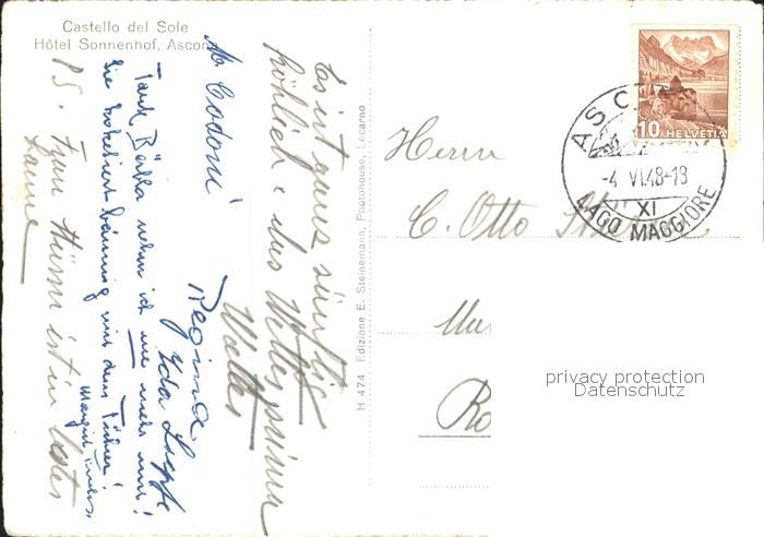 11652839 alte Postkarte Ascona TI Hotel Sonnenhof postalisch gelaufen Erhaltung siehe scans KatCode: 11470210655908