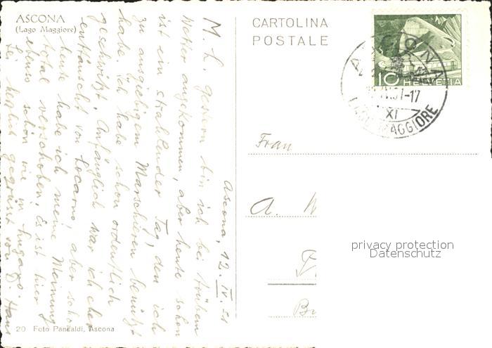 11642543 alte Postkarte Ascona TI Partie am Lago Maggiore Segelschiff postalisch gelaufen Erhaltung siehe scans KatCode: 11470210655908