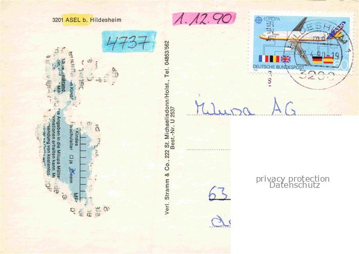 74141987 alte Postkarte Asel Hildesheim postalisch gelaufen Erhaltung siehe scans [SanaeD93] KatCode: 11110003254020