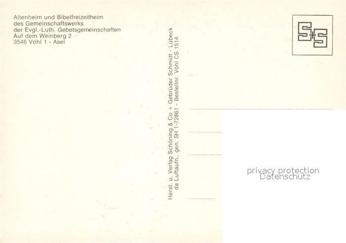 73667306 Asel Voehl Altenheim Bibelfreizeitheim Fliegeraufnahme postalisch nicht gelaufen Erhaltung siehe scans [FriedD77] KatCode: 11110006635019