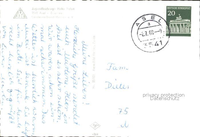 72007227 alte Postkarte Asel Voehl Jugendherberge Hohe Fahrt am Edersee postalisch gelaufen Erhaltung siehe scans KatCode: 11110006635019