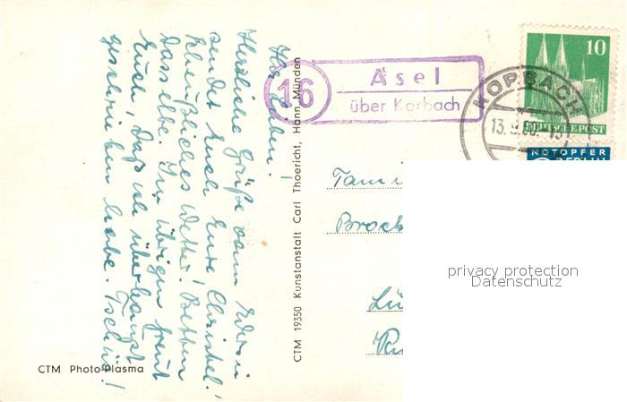 33045087 alte Postkarte Asel Voehl Jugendherberge Hohe Fahrt postalisch gelaufen Erhaltung siehe scans [NatalD47] KatCode: 11110006635019
