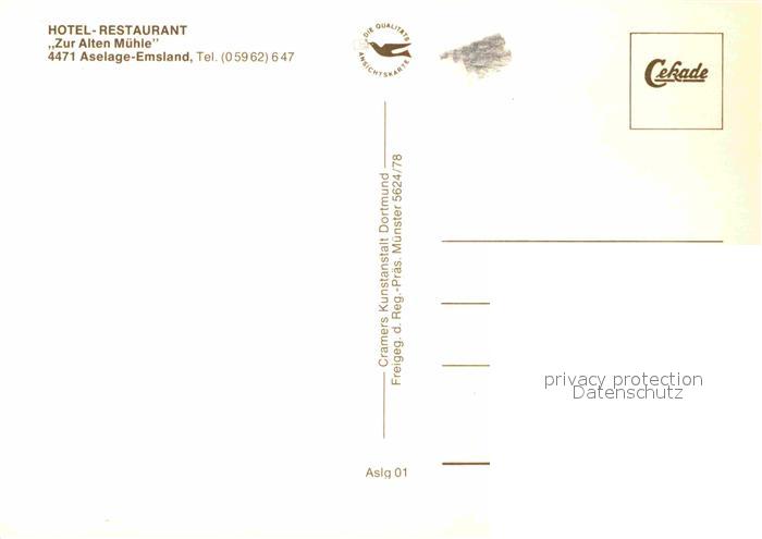 72786743 Aselage Hotel Restaurant Zur Alten Muehle Fliegeraufnahme postalisch nicht gelaufen Erhaltung siehe scans [WerneD78] KatCode: 11110003454021
