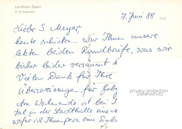 73840168 Asendorf Harburg Landheim Salem postalisch nicht gelaufen Erhaltung siehe scans [WerneD78] KatCode: 11110003353002