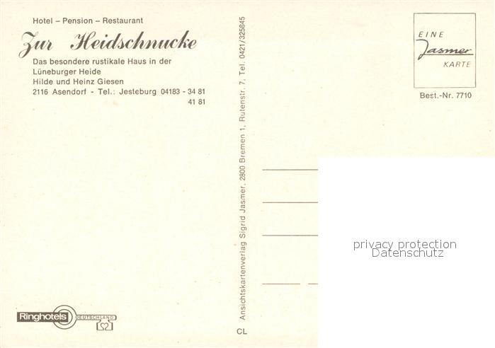 73725925 Asendorf Nordheide Hotel Pension Restaurant Zur Heidschnucke postalisch nicht gelaufen Erhaltung siehe scans [FriedD77] KatCode: 11110003353002