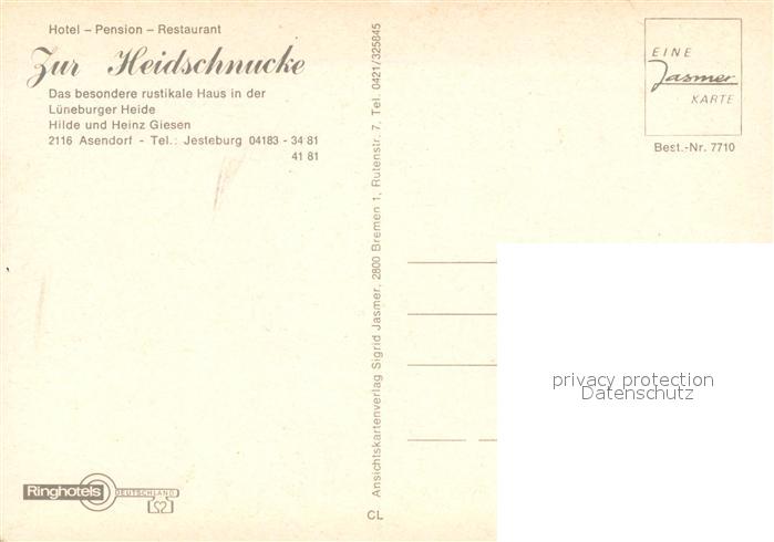 73722860 Asendorf Nordheide Hotel-Pension Zur Heidschnucke Aussenansicht postalisch nicht gelaufen Erhaltung siehe scans [LiesaD40] KatCode: 11110003353002