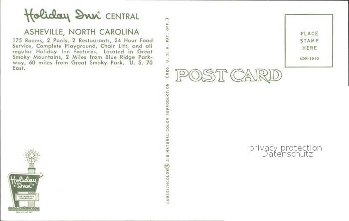 72278227 Asheville Holiday Inn Central Hotel Swimming Pool postalisch nicht gelaufen Erhaltung siehe scans KatCode: 14140350000000