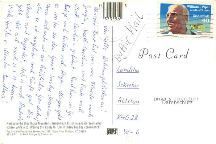 74030222 old postcard Asheville North Carolina USA Exciting Downtown Asheville postalisch gelaufen Fliegeraufnahme Erhaltung siehe scans [WerneD78] KatCode: 14140350000000