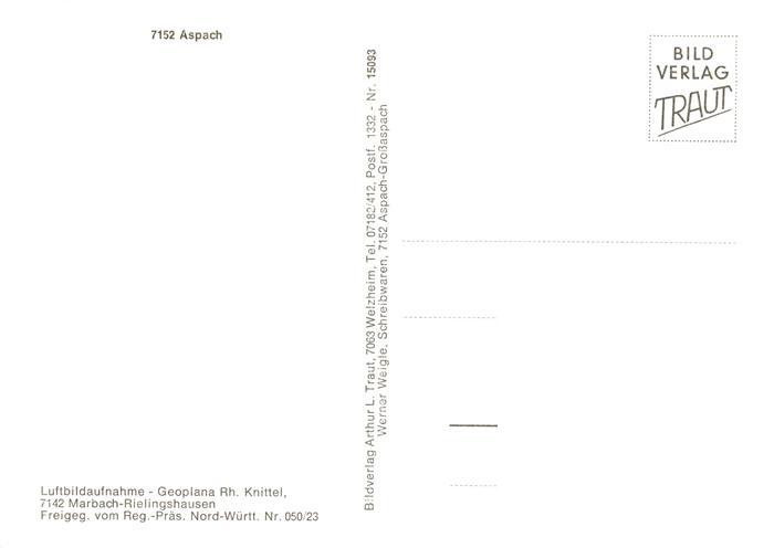73869144 Aspach Backnang Fliegeraufnahme postalisch nicht gelaufen Erhaltung siehe scans [FriedD77] KatCode: 11110008119087