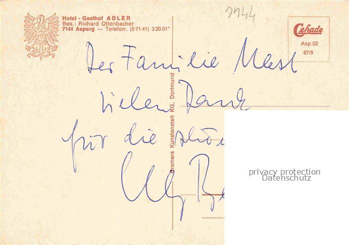 74053125 Asperg Hotel Gasthof Adler postalisch nicht gelaufen Erhaltung siehe scans [WerneD78] KatCode: 11110008118003