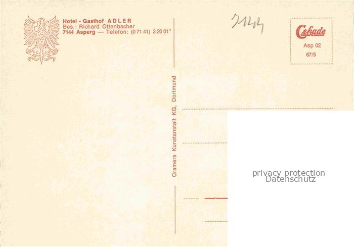 74053131 Asperg Hotel Gasthof Adler postalisch nicht gelaufen Erhaltung siehe scans [WerneD78] KatCode: 11110008118003