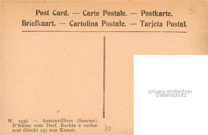 13554909 Assainvillers Les ruines du village a droite piece allemande de 150 abandonnee postalisch nicht gelaufen Erhaltung siehe scans [WerneD78] KatCode: 11170080380032