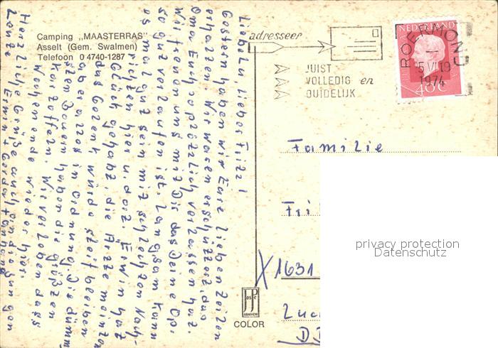 old postcard Asselt Camping Maasterras Segelboot postalisch gelaufen Erhaltung siehe scans