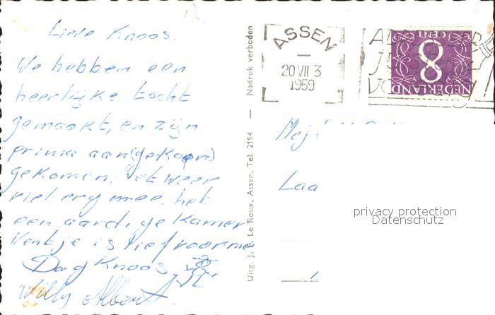 old postcard Assen Brink met Bevrijdingsmonument Denkmal postalisch gelaufen Erhaltung siehe scans