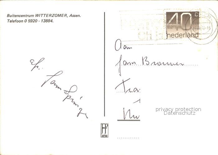 old postcard Assen Buiten Centrum Witterzomer Ferienhaus Schwimmbad Bettenlager postalisch gelaufen Erhaltung siehe scans