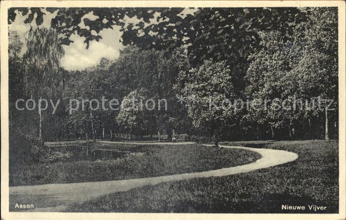 old postcard Assen Nieuwe Vijver postalisch gelaufen Erhaltung siehe scans