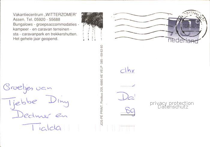 old postcard Assen Vakantiecentrum Witterzomer Zilverberkpark postalisch gelaufen Erhaltung siehe scans