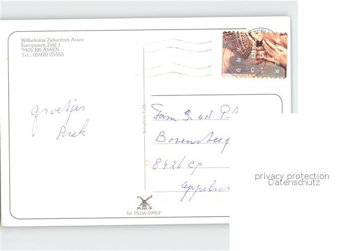 old postcard Assen Wilhelmina Ziekenhuis Fliegeraufnahme postalisch gelaufen Erhaltung siehe scans