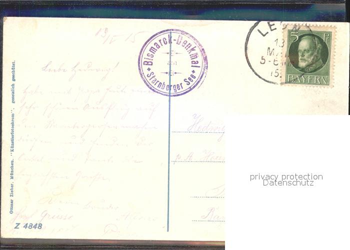 72133760 alte Postkarte Assenhausen Starnberg Bismarckturm am Starnberger See Alpen postalisch gelaufen Erhaltung siehe scans KatCode: 11110009188113