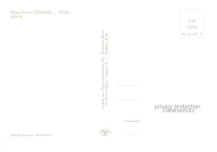 73134947 Assenheim Hessen Schloss Fliegeraufnahme postalisch nicht gelaufen Erhaltung siehe scans [FriedD77] KatCode: 11110006440017